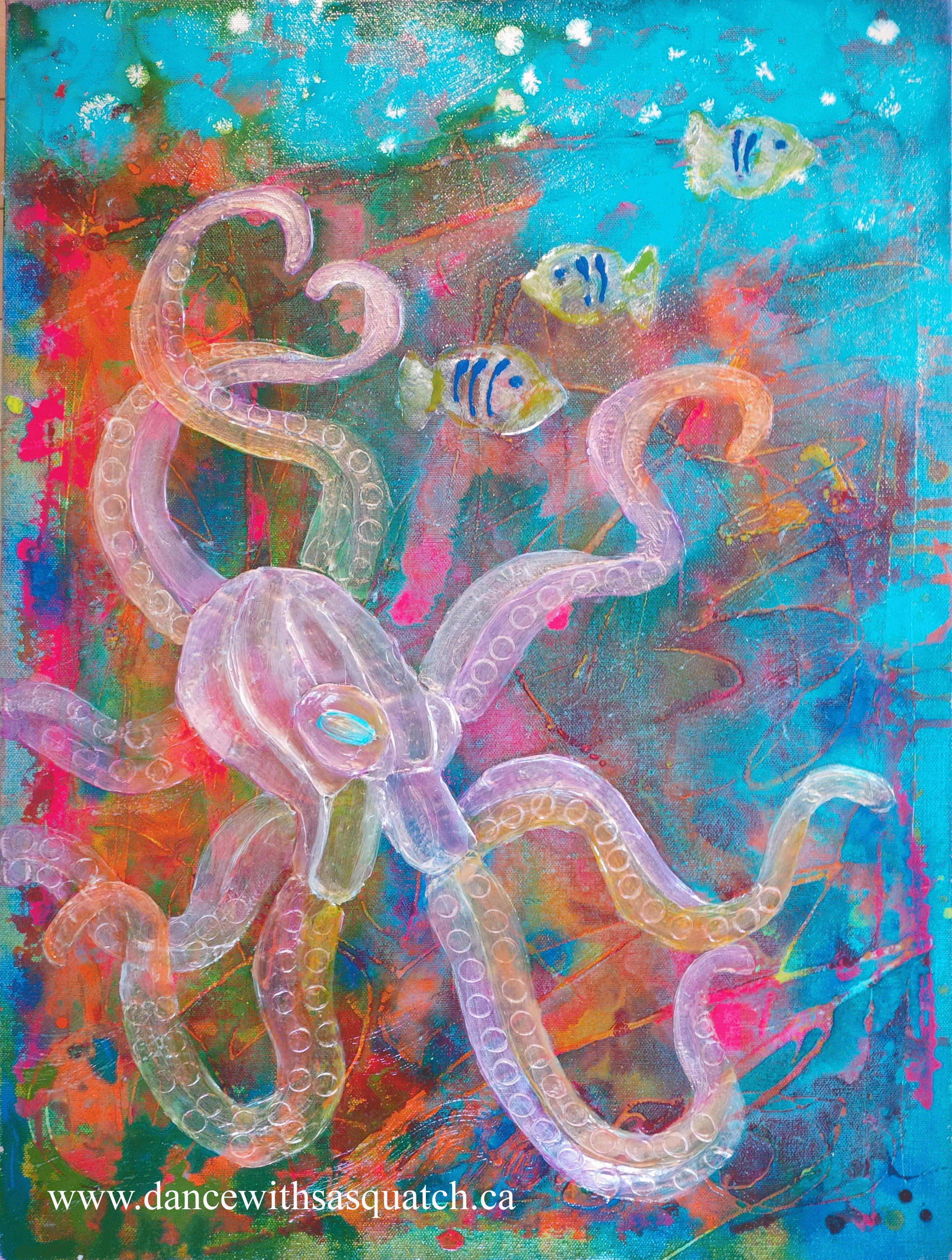 Wisdom Seeker, 2016 Acrylic and Mixed Media On Canvas, 18″ X 24″, CDN $250 Octopus teaches us to remain flexible despite circumstances, and helps us to assert ourselves, while also “blending in”. She is a master of her environment, and for the artist, a wellspring of inspiration. This octopus is created with acrylic skins, giving […]